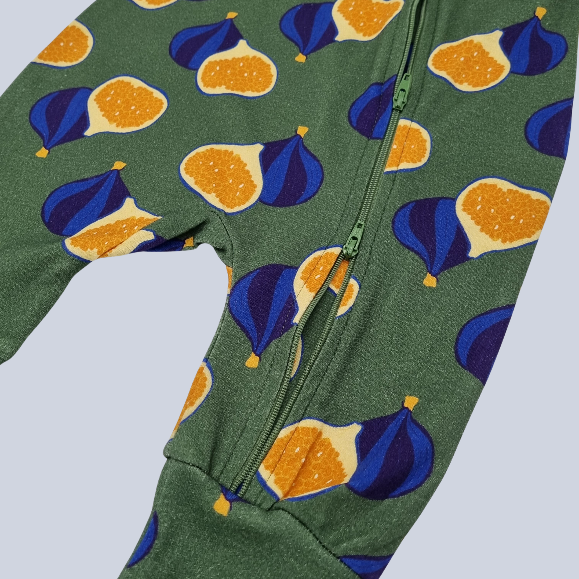 A playsuit for your little one that offers unbeatable comfort and convenience. Crafted from premium organic cotton for quality snoozes and playtime, this playsuit features a double zip for easy diaper changes. All this, plus a delicious fig pattern, for your little one to look beautiful and feel cozy.
