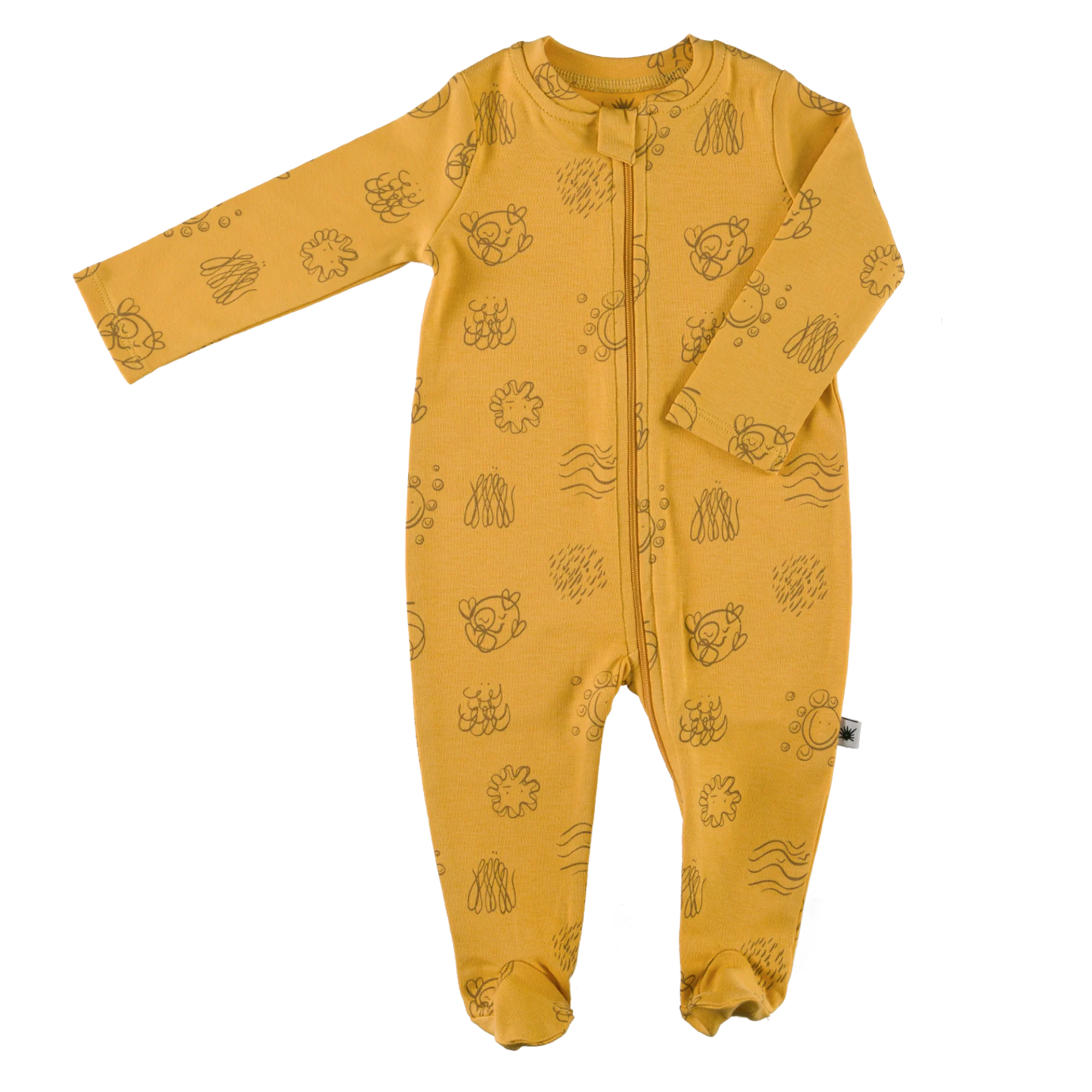 Organic "Zip" Footed Jumpsuit - Saffron Yellow