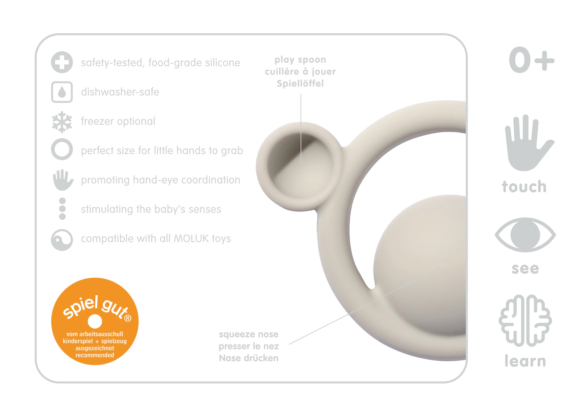Make teething a pleasant experience with the Nigi, Nagi and Nogi in beautiful pastel colours. Made by renowned kids’ brand, Moluk, these teethers are made to soothe your little one’s sore gums.