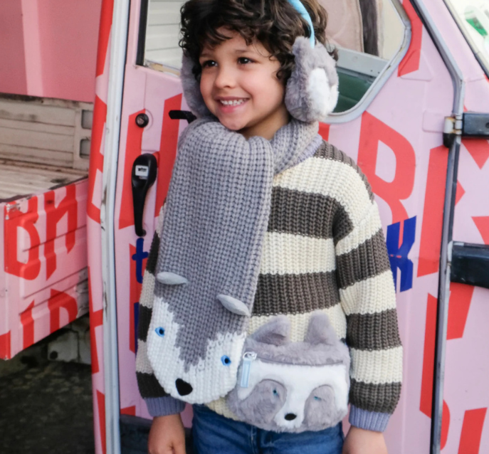 Our loyal snow pup is the perfect buddy to keep your winter essentials safe! This loveable husky bug bag has piercing blue eyes and fluffy ears, and is fully lined with spotty fabric! Featuring a zip closure, adjustable strap and belt loop.