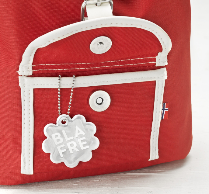 Features a front pocket with a poppered buckle fastening and genuine leather straps and edging.