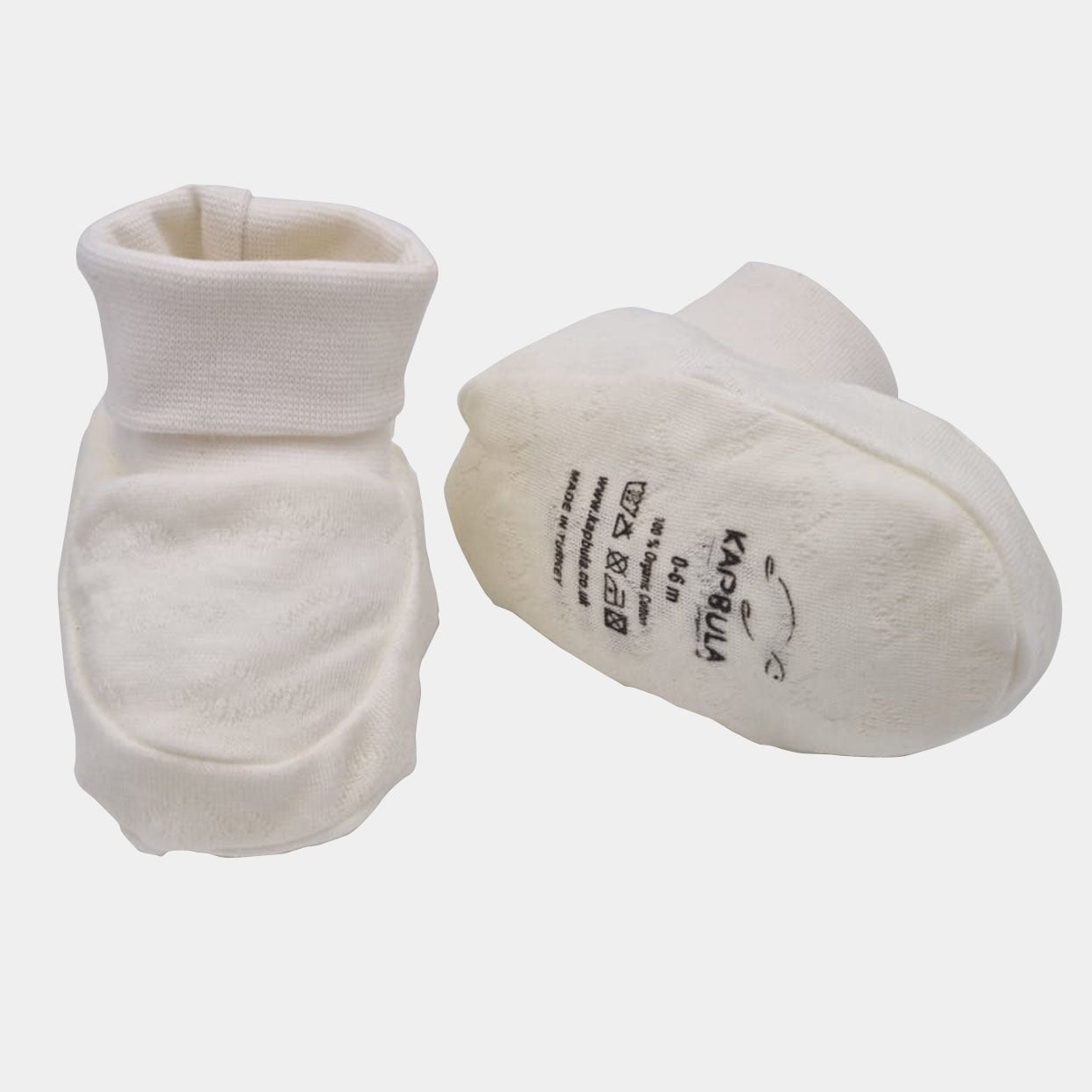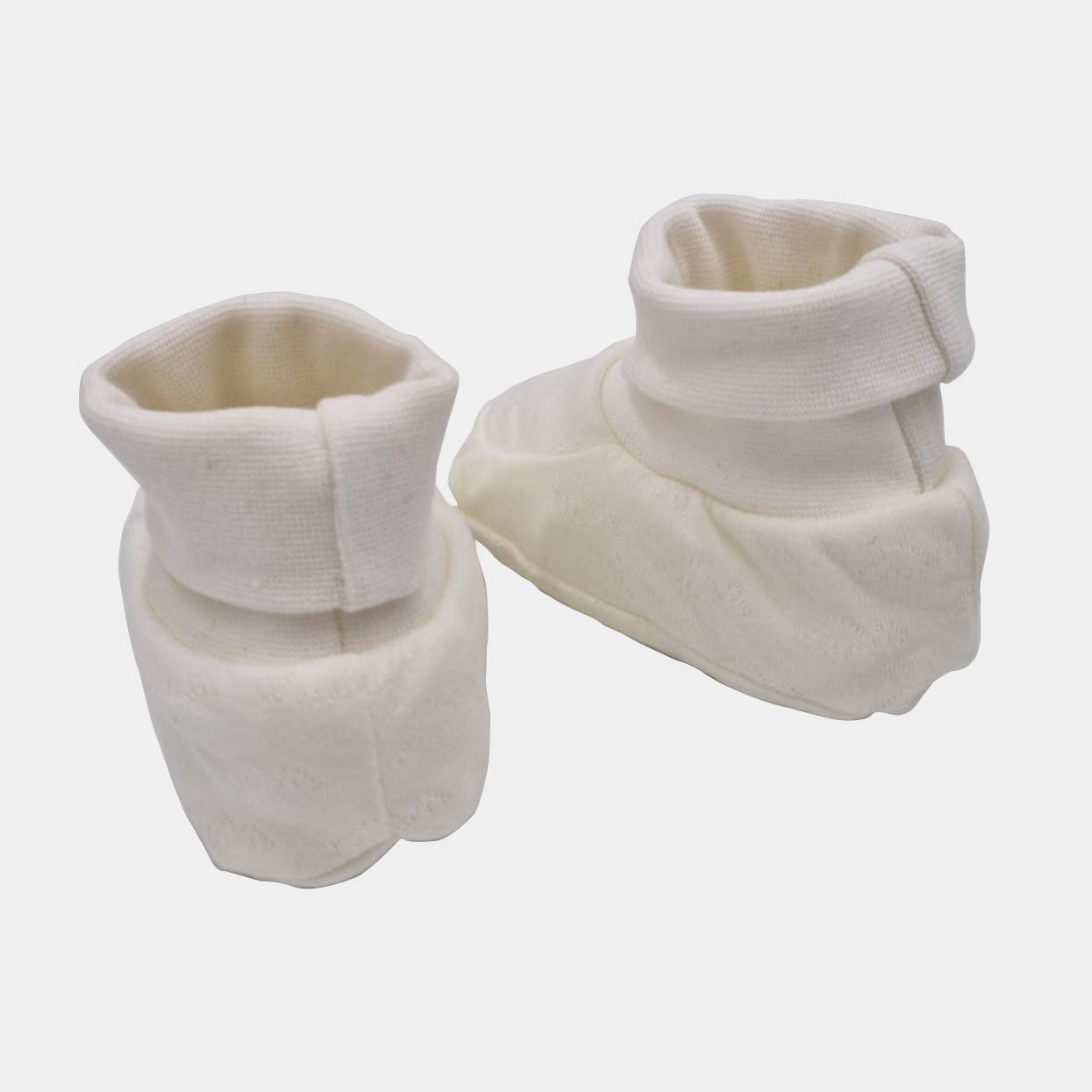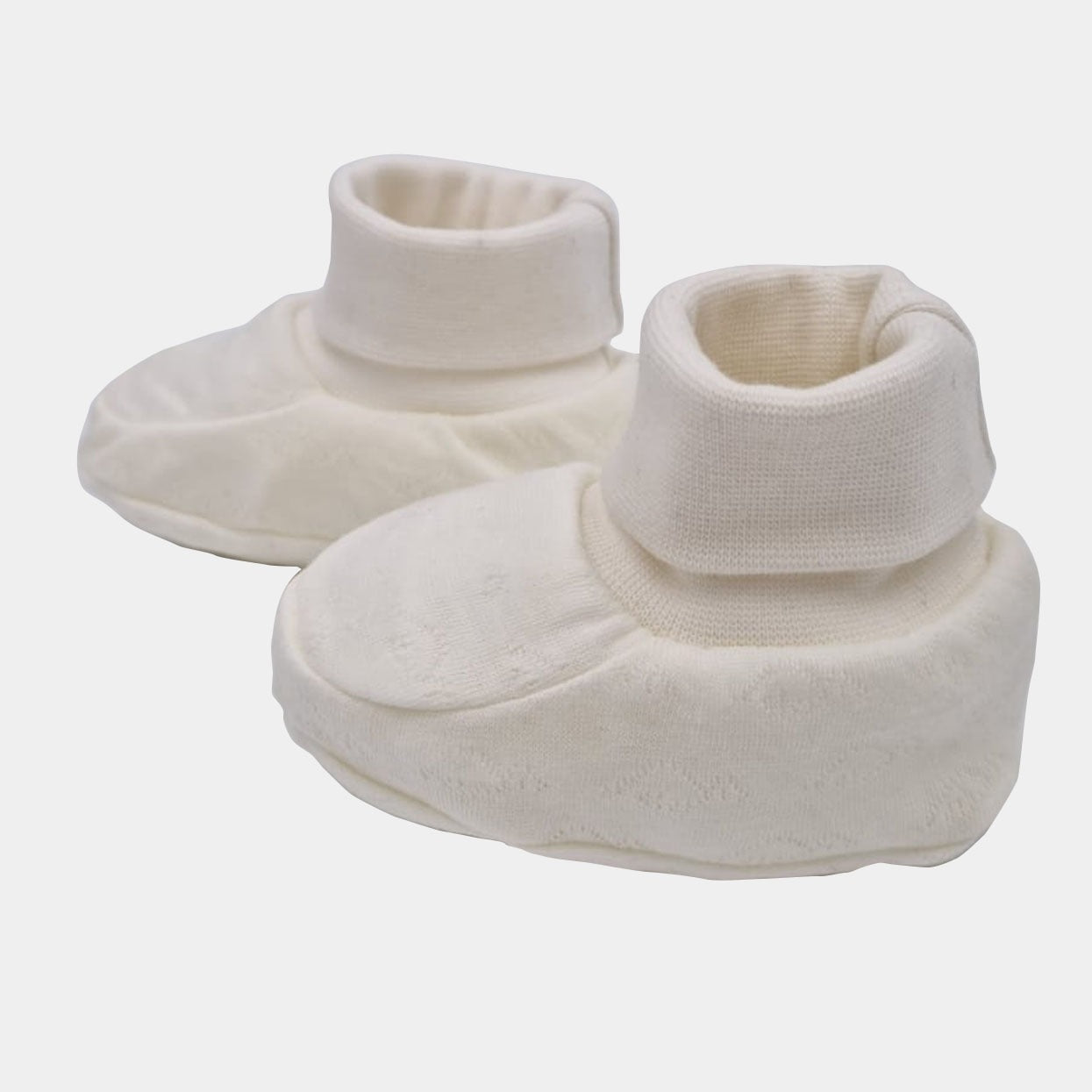 These lovely comfy booties are classic. They have an elastic ankle band. Very soft and cosy, it definitely will keep the little peas warm.