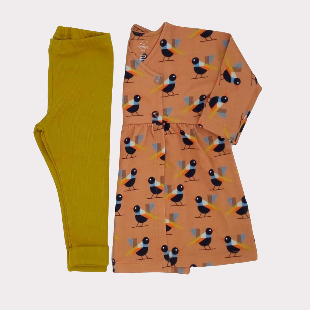 Discover a truly special look with this Organic Baby Dress Set Birds! Crafted with soft organic cotton, this two-part set of dress and legging offers a relaxed and chic design enhanced with a cute birds pattern. Perfectly multifunctional and incredibly useful, this set ensures a sight to behold and a feel to remember!