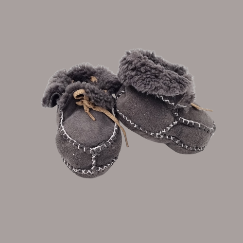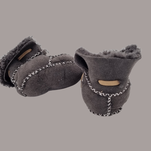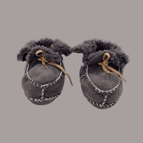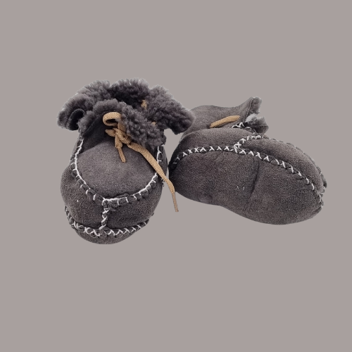 The Upcycled Leather Booties are crafted with recycled sheepskin, making them both eco-friendly and cozy. Your little one's feet will stay warm and comfortable with the sheepskin fur lining, while the hand-made design and tie-up feature ensures they won't slip off. Keep your baby's feet warm and the environment green with these stylish booties.