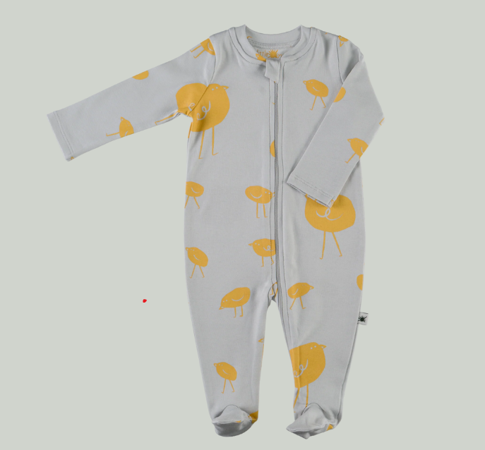 Organic "Zip" Footed Jumpsuit - Light Grey & Saffron