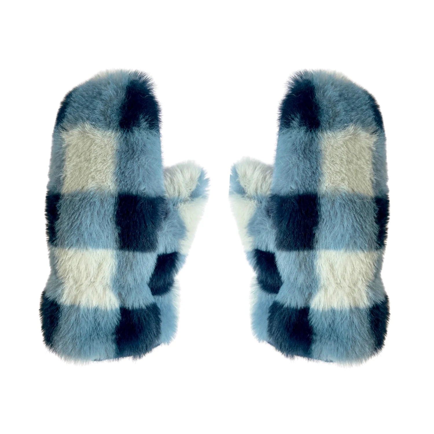 Furry Checked Mittens Blue