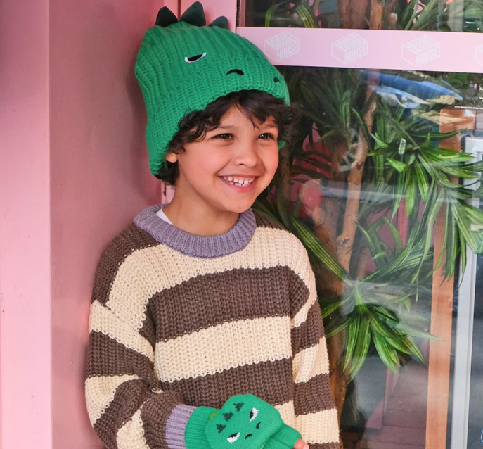Feel totally roaaaar-some in our T-Rex knitted hat! With velvet spikes and embroidered face detailing, this hat is also fleece lined for extra warmth. Perfect for dinosaur adventures this winter!
