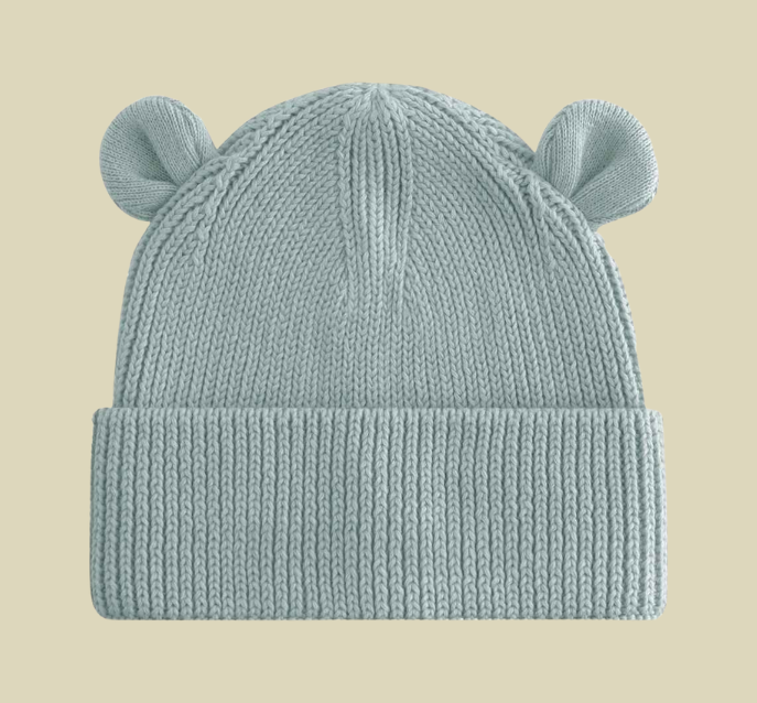 Organic Baby Bear Beanie-Dusty Turquoise