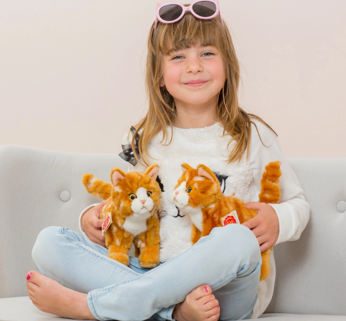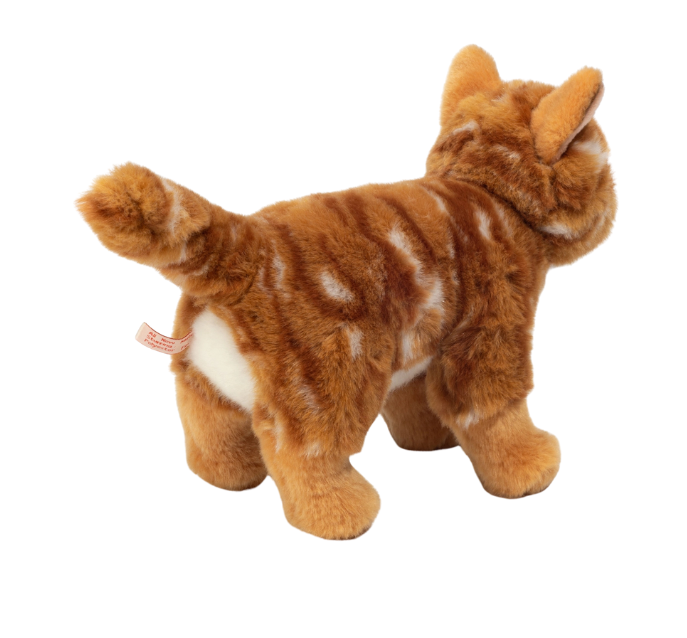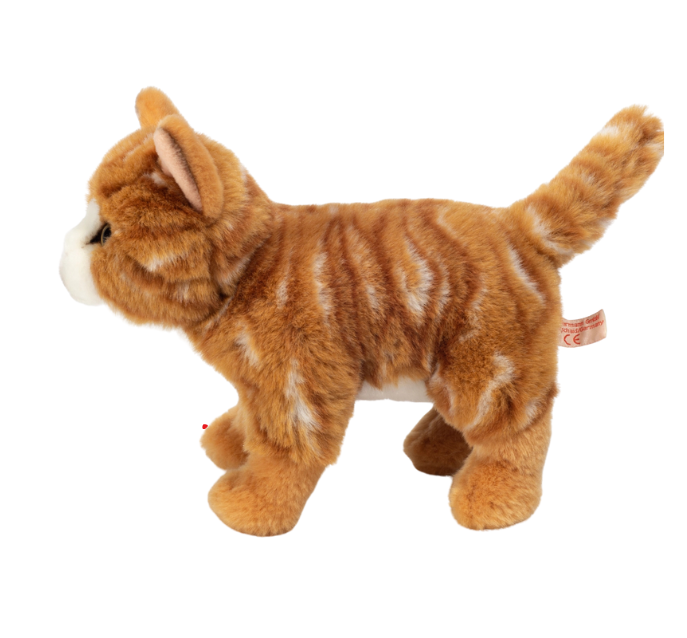 The cute house cat from the Hermann Teddy Collection is made of high-quality, red tabby plush and filled with soft polyester wadding. The cat stands firmly on 4 paws and has optimal grip.