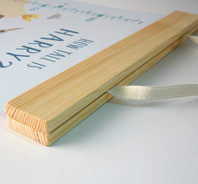 The wooden bars at the top and the bottom give a neat finish and weight the chart to ensure it hangs straight down. There is a ribbon at the top of the chart which is designed to hang on a hook or nail, so you won't need tape or blue tac.