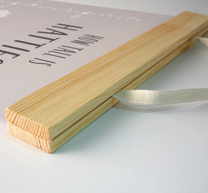 The wooden bars at the top and the bottom give a neat finish and weight the chart to ensure it hangs straight down. There is a ribbon at the top of the chart which is designed to hang on a hook or nail, so you won't need tape or blue tac.