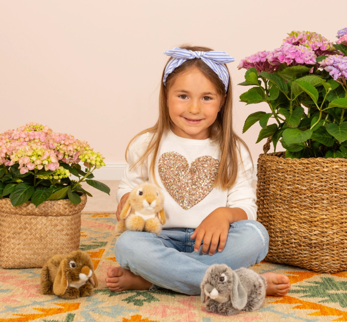 Bunnies are the focus not only at Easter. You can enjoy the cute microbes with their floppy ears and colorful fur colors all year round. The ram rabbits by Teddy Hermann look confusingly similar to the living originals. The mottled fur, big brown eyes and long floppy ears of the lying animal invite curious children's eyes to cuddle and play.