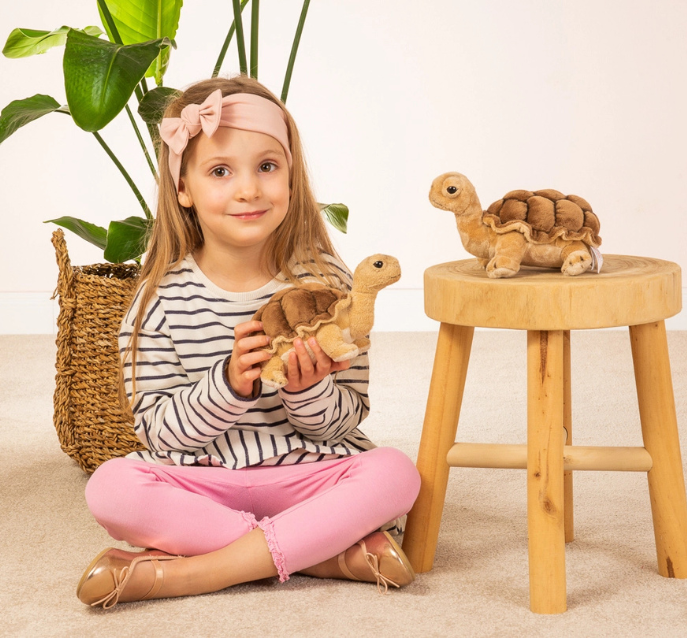 The 20 cm tall turtle from the Hermann Teddy Collection not only impresses with its cute look and the cuddly soft surface, but also reveals great attention to detail in its design. The intricately structured shell, the three-toed feet, the light belly and the shaded head make it a lovingly designed, unusual companion not only for reptile fans. Thanks to its compact size, it is easy to take with you on any trip.
