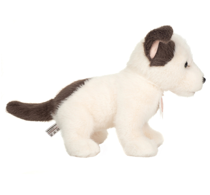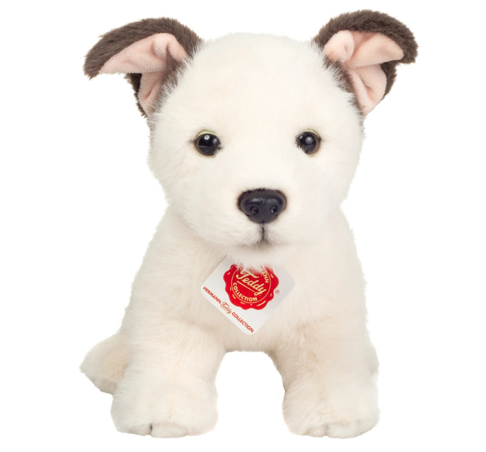The design of the cute puppy Russel from the Hermann Teddy Collection breaks new ground - the short hair coat, which has a rather shaggy appearance despite cuddly soft plush, makes him look very realistic. You would immediately want to hug and cuddle him and expect a loving growl and bark. Russel is also very clever; like every puppy, he curiously strays in the children's room and makes friends with the other cuddly toys.