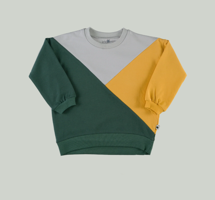 Organic "Zip" Footed Jumpsuit - Light Grey & Saffron