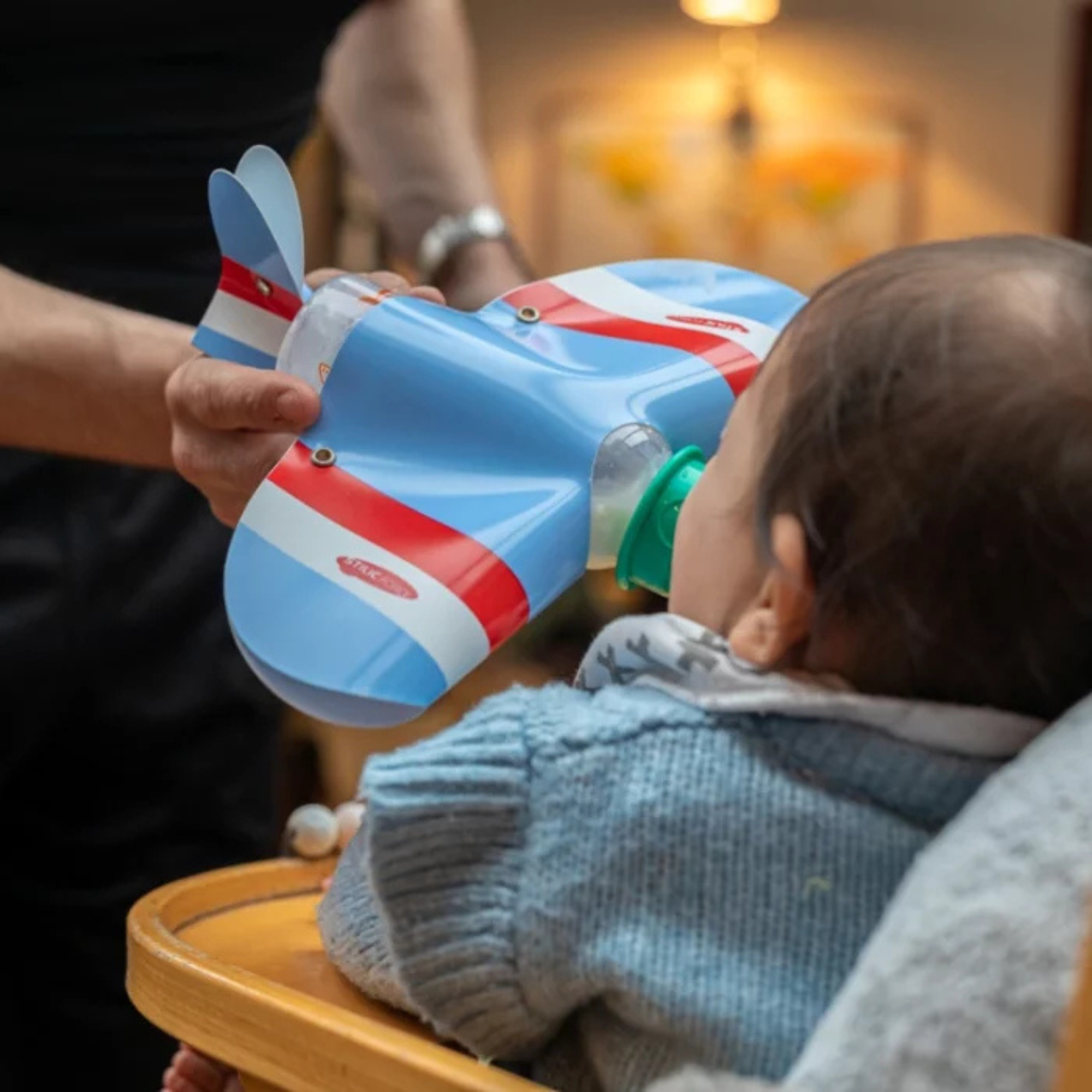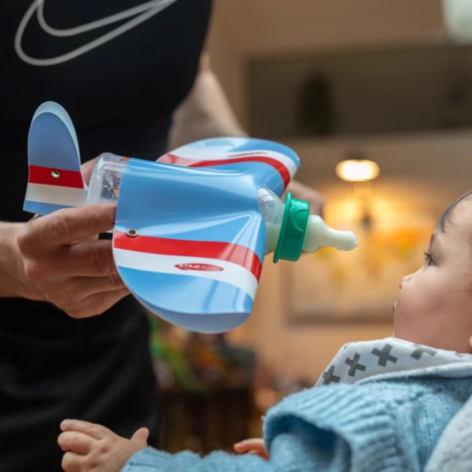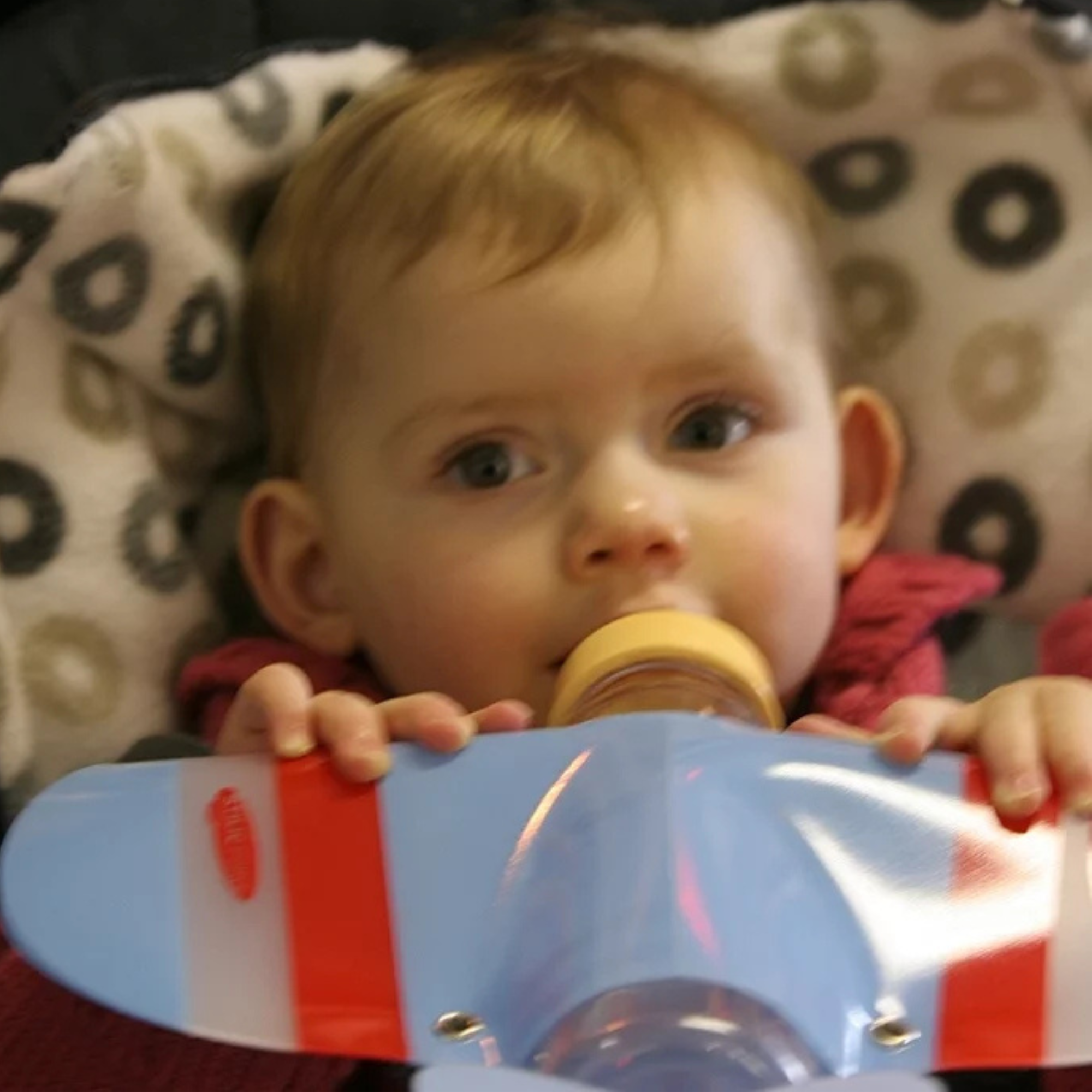 Designed by Nicolas TRUB, the creator of this product, who is also the father of the baby in the picture, now a healthy 14-year-old. The playful airplane design will pique your child's curiosity and make bottle-feeding an exciting adventure.