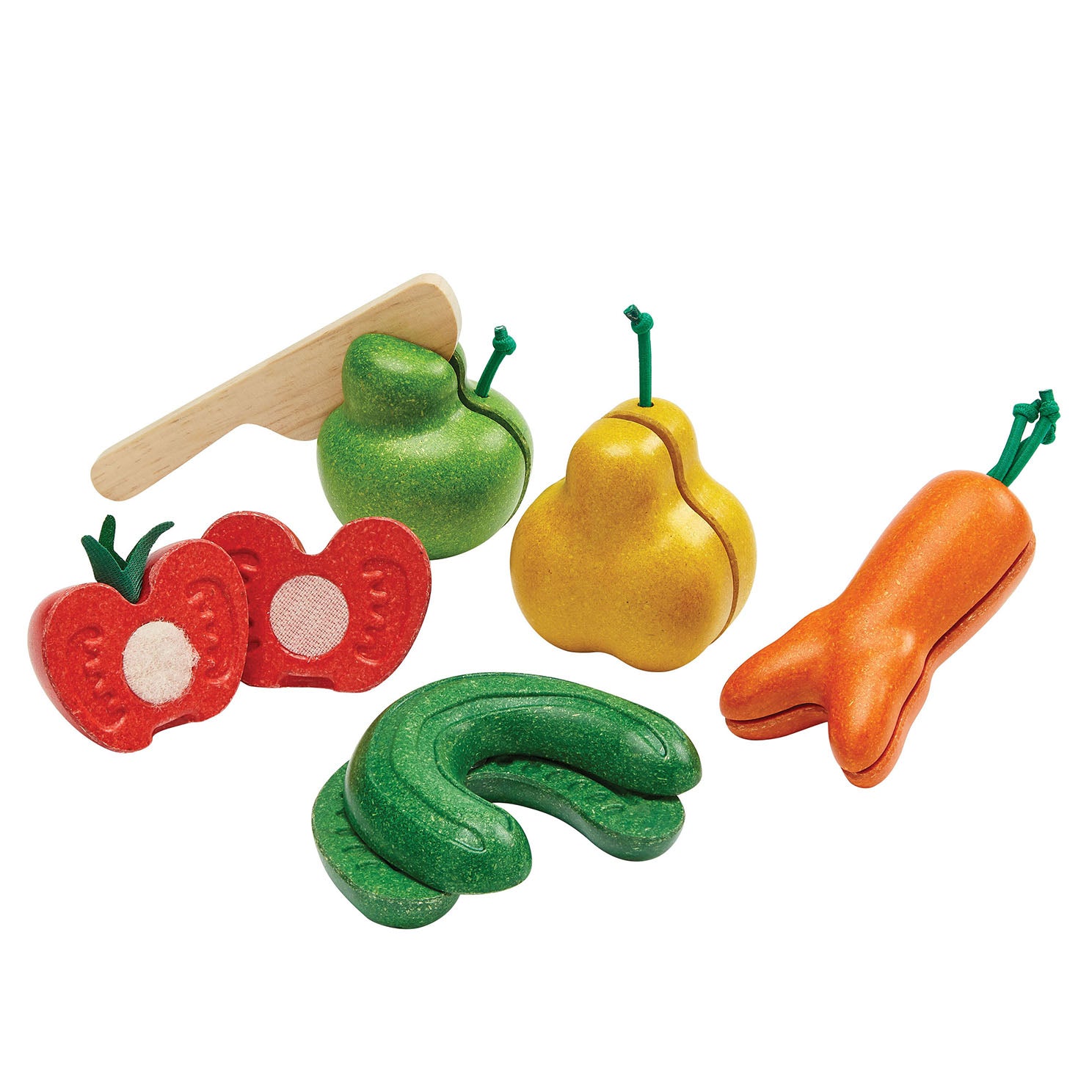 • This set includes a pretend play knife and 5 sliceable fruits and vegetables.