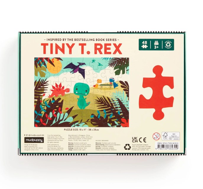 The Tiny T.Rex 48-Piece Puzzle from Jay Fleck is perfect for children ages 3 and up to complete on their own. Featuring everyone's favorite pint-sized dinosaur, this colorful puzzle is sure to amuse and excite all puzzlers!