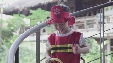 Firefighters are our everyday heroes! This Fire Fighter play set invites children to explore the daily duties of a real firefighter. The set features an adjustable helmet and jacket, megaphone, fire extinguisher, water hose, flashlight, hatchet and walkie talkie. Tackle nearby emergencies and discover what it's like to be a real fireman!