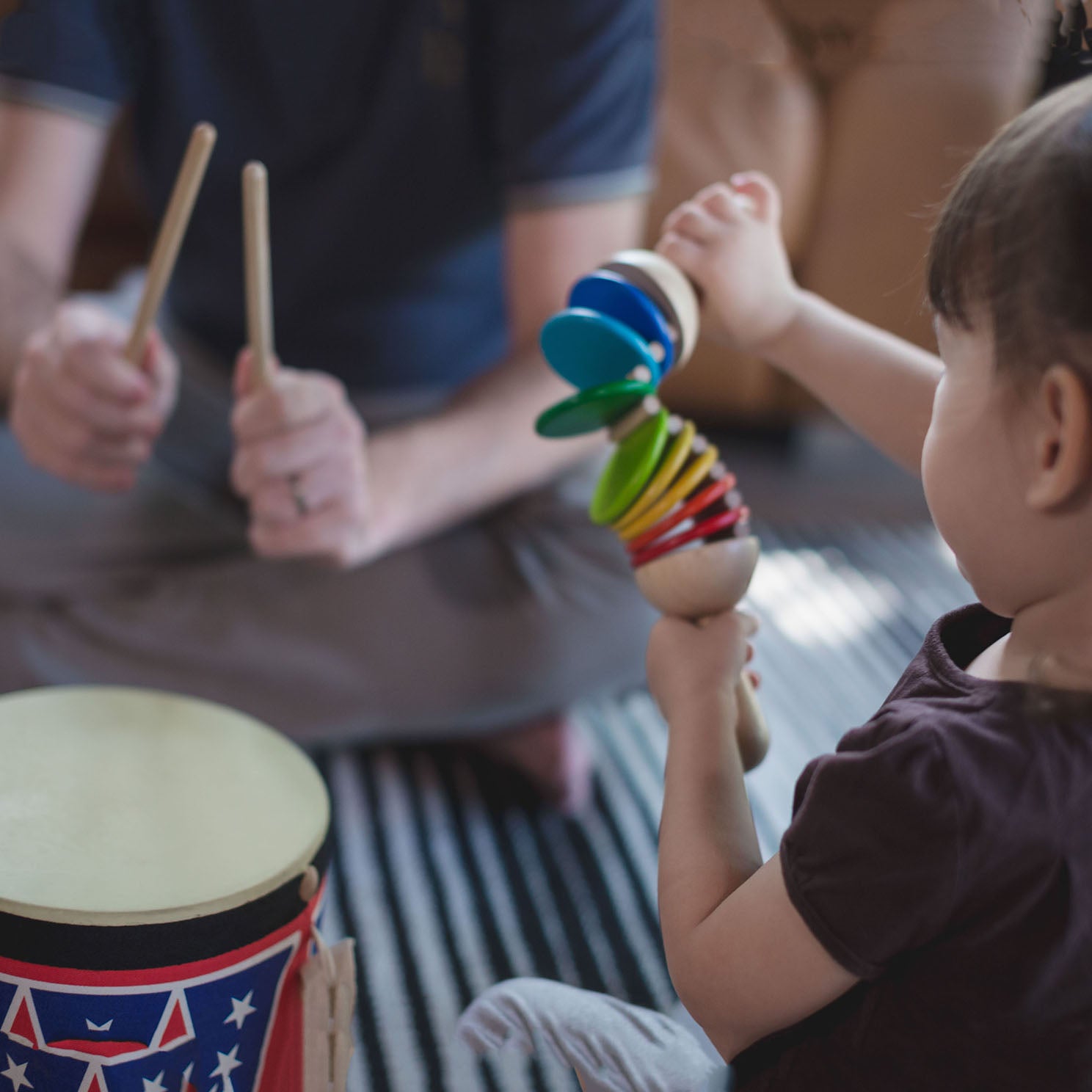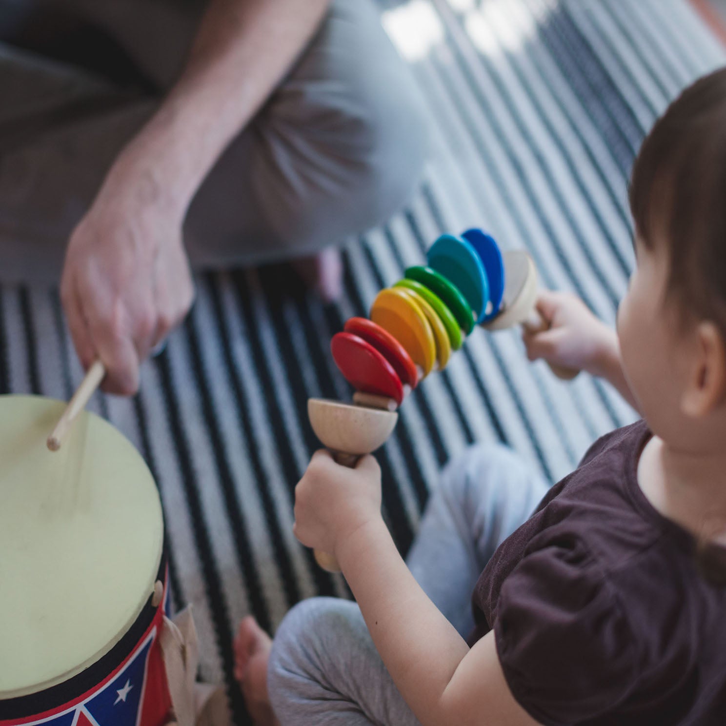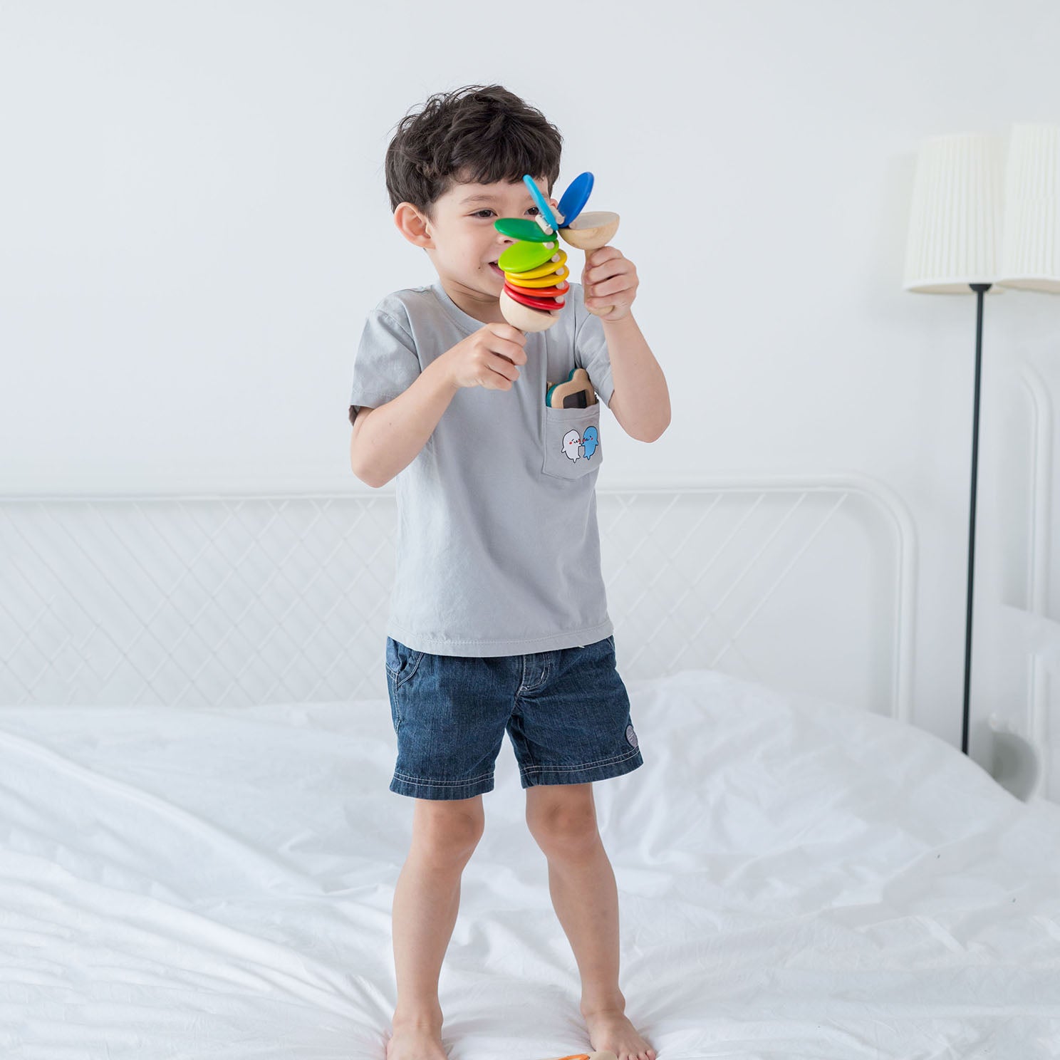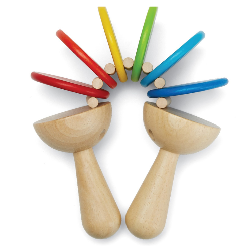Using an alternating up and down motion with both hands the toy's colorful segments will create various click-clack sounds.